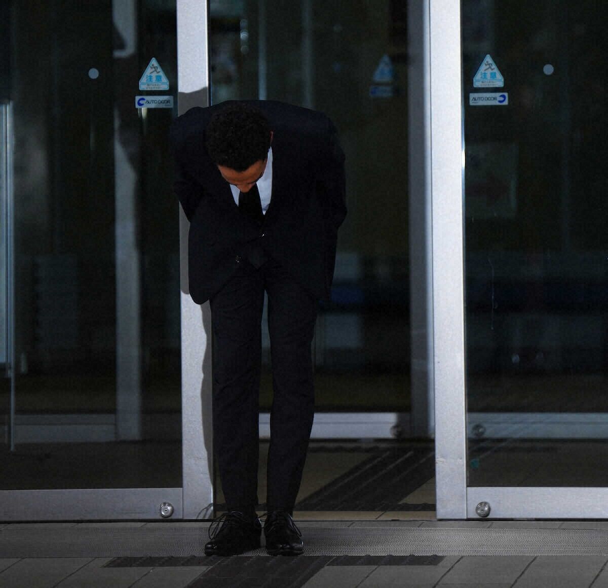 草間容疑者は「このたびはお騒がせして申し訳ございませんでした」と深々と一礼後、少し歩を進めて立ち止まると、「申し訳ございませんでした」と涙を見せながら再び謝罪した。