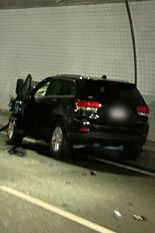 衝突後は右端の追い越し車線で停止した。この事故で、同乗していた男性が骨折するケガを負ったとされている。