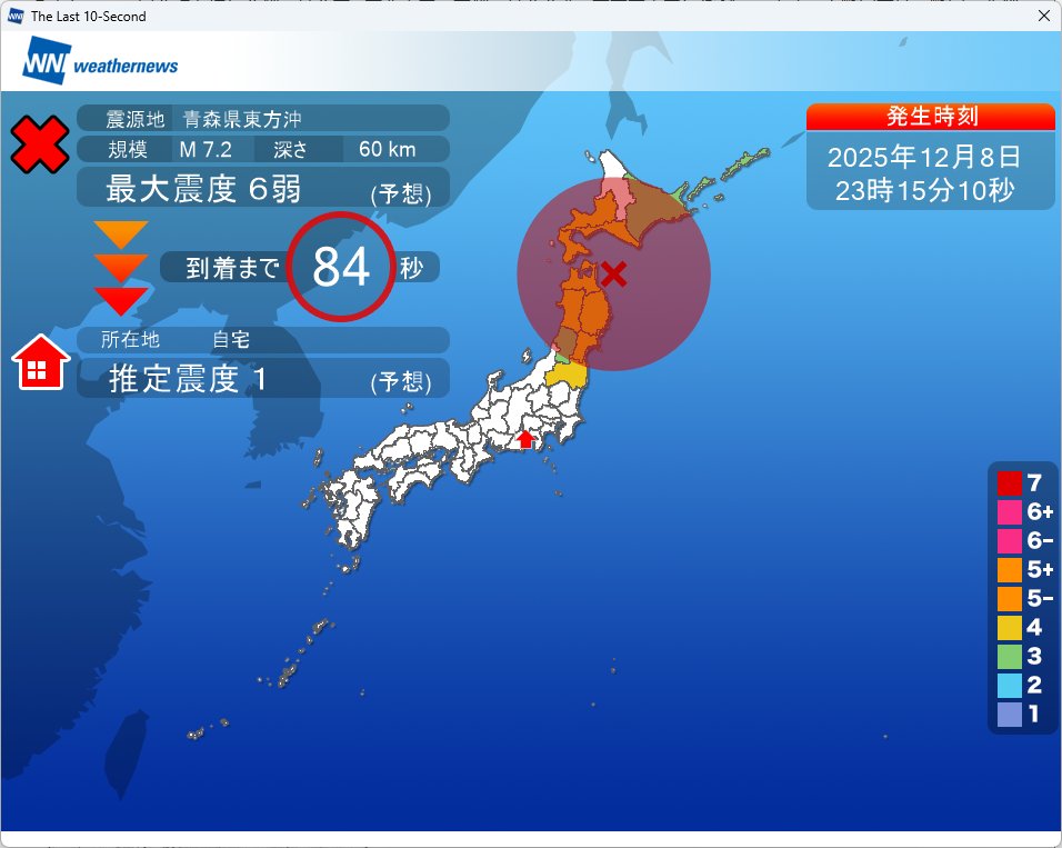 @wni_jp【地震情報】 12月8日 23:15 震度6強 【青森県】青森県三八上北 ▶生放送で解説中 youtube.com/live/hc3_ZasO_… weathernews.jp/s/topics/20251… pic.x.com/CpMBxNFGFJ