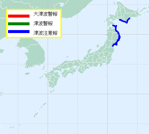 青森県東部の地震発生による津波注意報は、北海道と青森の太平洋沿岸と岩手、宮城の両県。