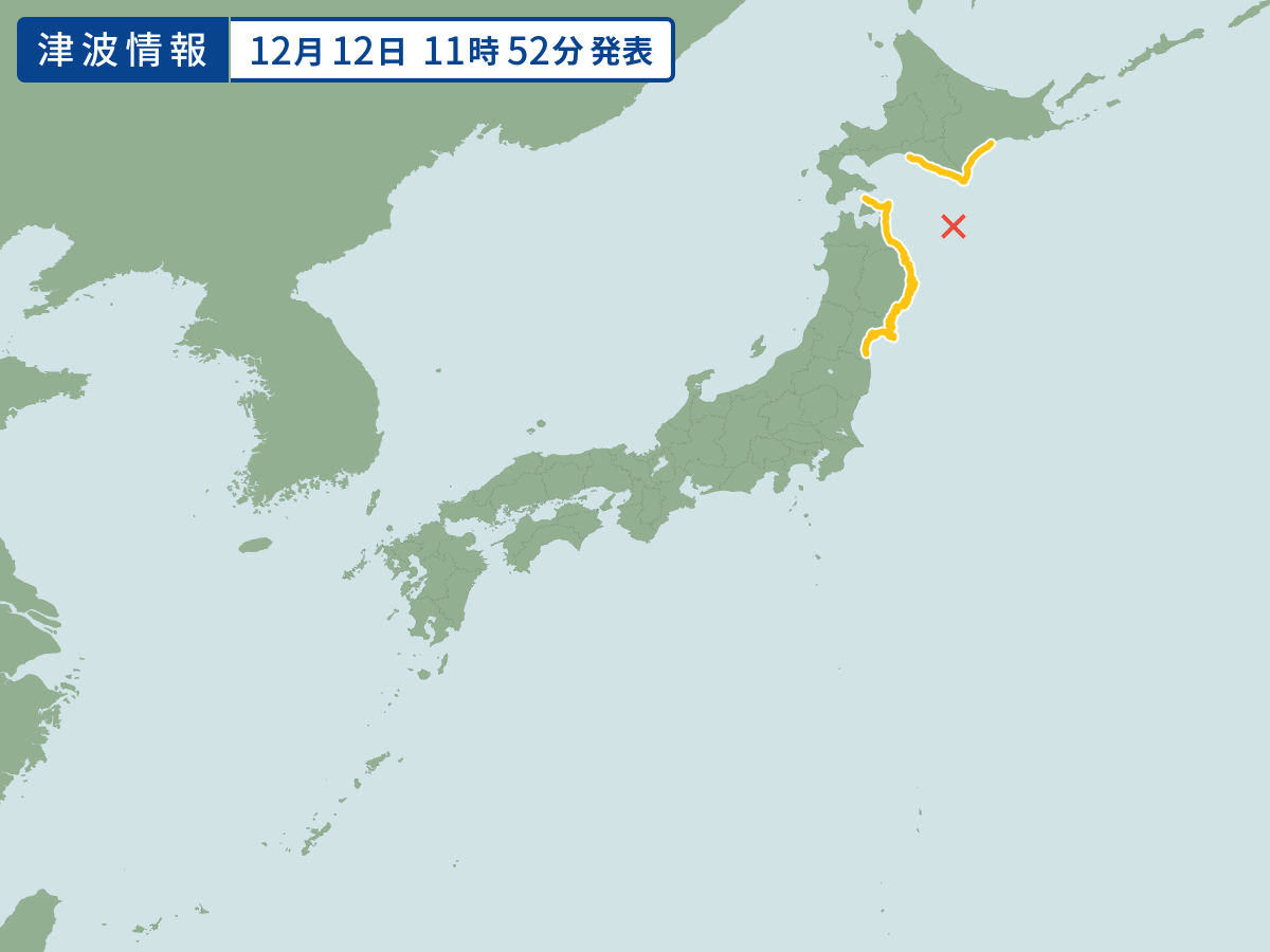 @wni_jp【⚠️津波注意報】 12月12日(金)11時44分頃に青森県東方沖で発生した地震により、11時52分、東北地方太平洋沿岸、北海道太平洋沿岸中部に津波注意報が発表されました。 海の中や海岸付近は危険です。海の中にいる人は海から上がって、ただちに海岸から離れてください。 weathernews.jp/news/202512/12… pic.x.com/ljNWDt6ZeL x.com/wni_jp/status/…