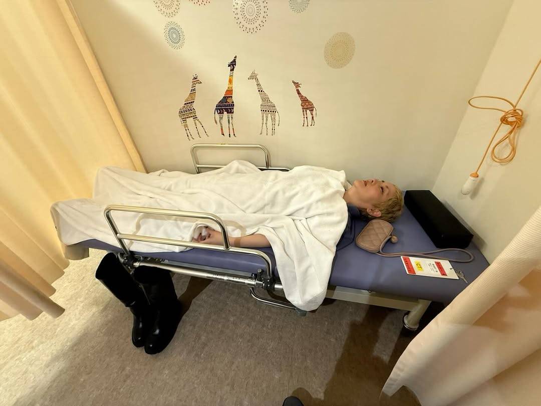 病院でCT検査を受けたことをインスタグラムで報告。「造影剤を点滴すると、身体中が、身体の中から燃える様に熱くなり息苦しくなる」「終わった瞬間の脱力感で、身体が全く動かなくなり車椅子で運ばれ、しばらく寝ていたそうです」と検査後の状況を説明し、ベッドで横たわる姿を披露。「意識はうっすらありましたが、前回も、同じ様な事が起こっていました」と続けている。