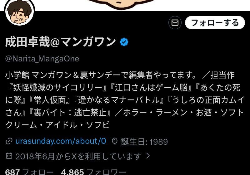 同じマンガワンで漫画連載してたインフォーマの沖田臥竜がアクタージュが原作者の性犯罪で打ち切りになった後にマンガワンの編集者がDMで口説いて集英社に内緒で匿名で連載させようとしてたって暴露してるな