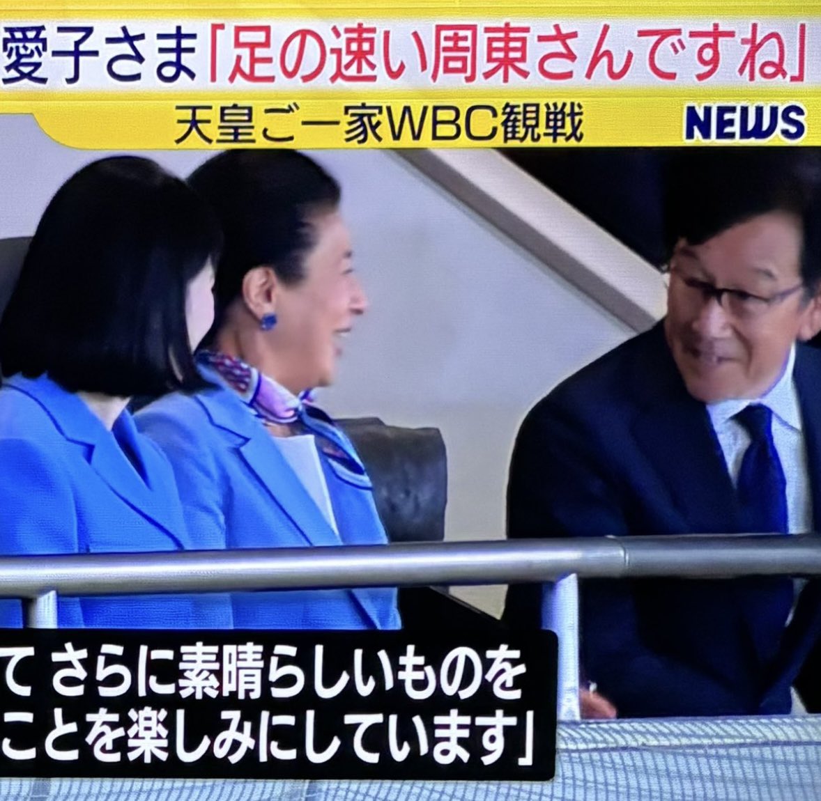 陛下は選手の特徴やプレーの狙いに加え、人工芝の肉体への負担など設備面への質問も重ねられた。僅差の終盤には試合に見入り、劣勢をはね返した吉田正尚選手の逆転本塁打などに盛んな拍手を送られたという。