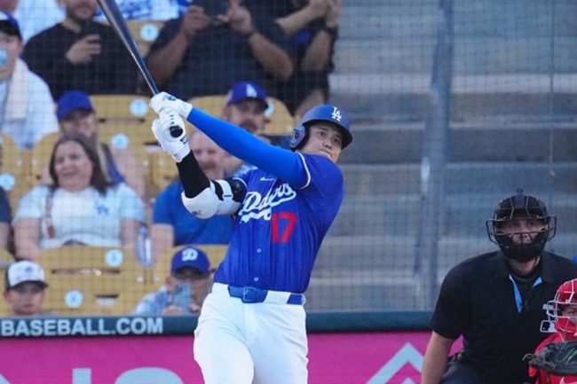 ドジャースの大谷翔平選手(30)が、今季のオープン戦初出場となったエンゼルス戦に「1番・指名打者」でスタメン出場し、初回先頭の第1打席で、いきなり本塁打を放った。メジャー8年目で最速弾となった。