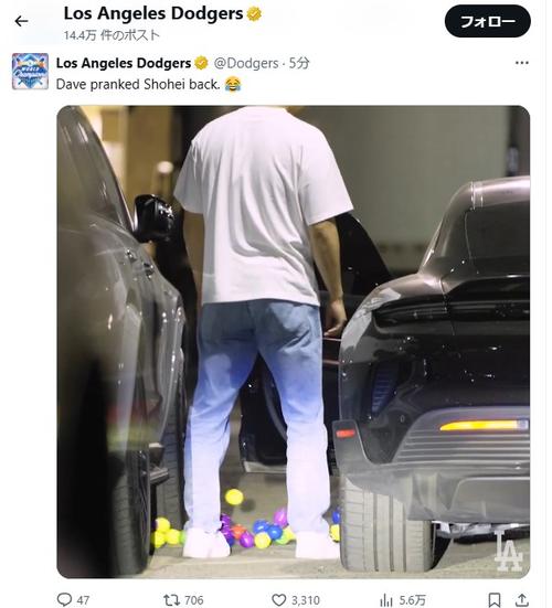 | ドジャース・大谷翔平 ロバーツ監督に仕返しされた!車開けたら「え!?」流れ出る出るボールが …一撃。3年連続本塁打王への期待が膨らむ。 ドジャース・ロバーツ監督が大谷にドッキリを仕返しした。自身の写真がプリントされたボールで、大谷のポルシェの… (出典:デイリースポーツ) |
