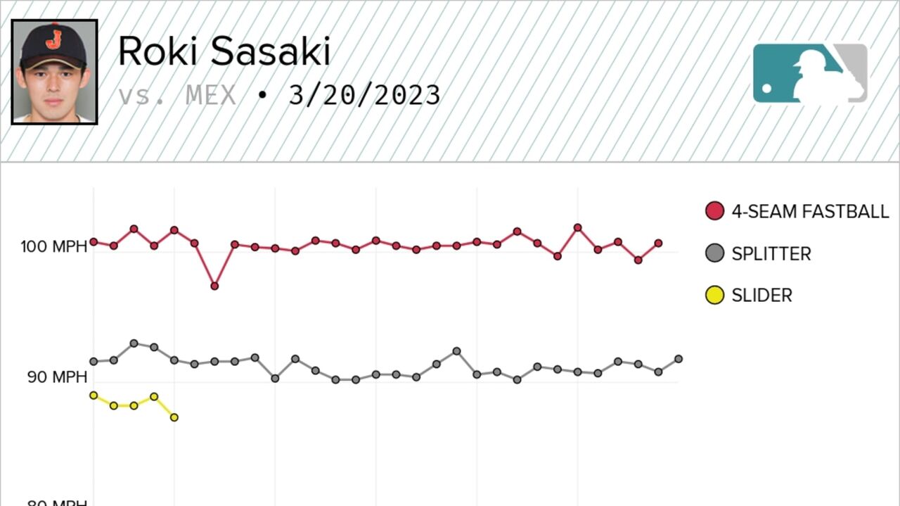 試合後、米メディアは佐々木の初回の最速が94.1マイル(約151.4キロ)でその他の直球が90マイル台前半だったことを指摘した。初回に本来の球速が出ず、変化球が多かったと質問された佐々木は「全体的にコントロール良くストレートも変化球も操れていた。その分球数少なくイニングも稼げた。球速は僕もびっくりしたんですけど、その中でも徐々に上げながら。初回はいろいろあって自分の中でも理由はわからないですけど、そこは修正して。それでももっともっと上げていかないといけないですけど、とりあえず今日は仕事ができたので良かったです」と答えた。