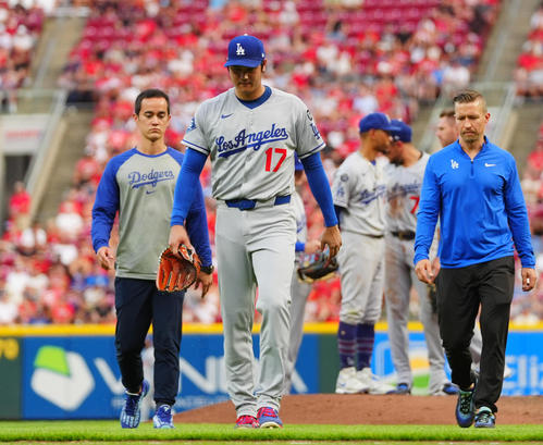 レッズ―ドジャース(30日、シンシナティ)米大リーグ、ドジャースの大谷翔平投手(31)がレッズ戦に「2番・投手兼DH」で出場。投手復帰7戦目で四回途中で降板した。