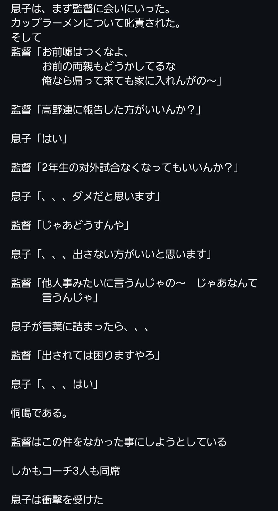 辞退なんかするわけない 野球部長が悪かったことになって責任とって辞任で一件落着