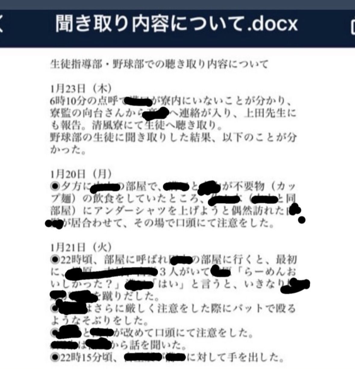 1月に起きたこの事案を被害者部員である親が、広陵が甲子園出場が決まった後にXの投稿で被害状況をこと細かく訴えている。