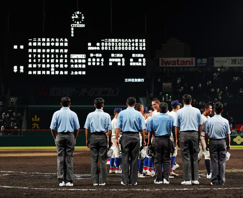 過去、甲子園大会で最も遅い試合終了は、2021年夏に高川学園(山口)と小松大谷(福井)の試合で記録された午後9時40分。午後10時以降の鳴り物禁止タイムに突入するのは史上初の珍事だった。