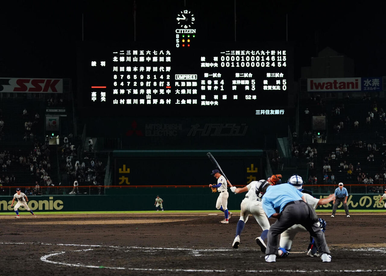 8日の第4試合、高知中央(高知)と綾羽(滋賀)の一戦は、前の試合が雨天で1時間ほど中断した影響もあり午後7時49分に試合開始。