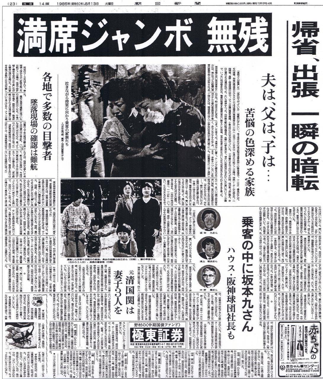 テレビ番組「笑点」のメンバーだった落語家の桂歌丸さんらは1985年8月12日夕、翌日の阿波踊りに参加するため、羽田発徳島行きの飛行機を待っていた。
