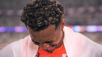 世界陸上男子110mハードル、メダルの期待がかかった村竹ラシッドは結果かでて泣き崩れた。